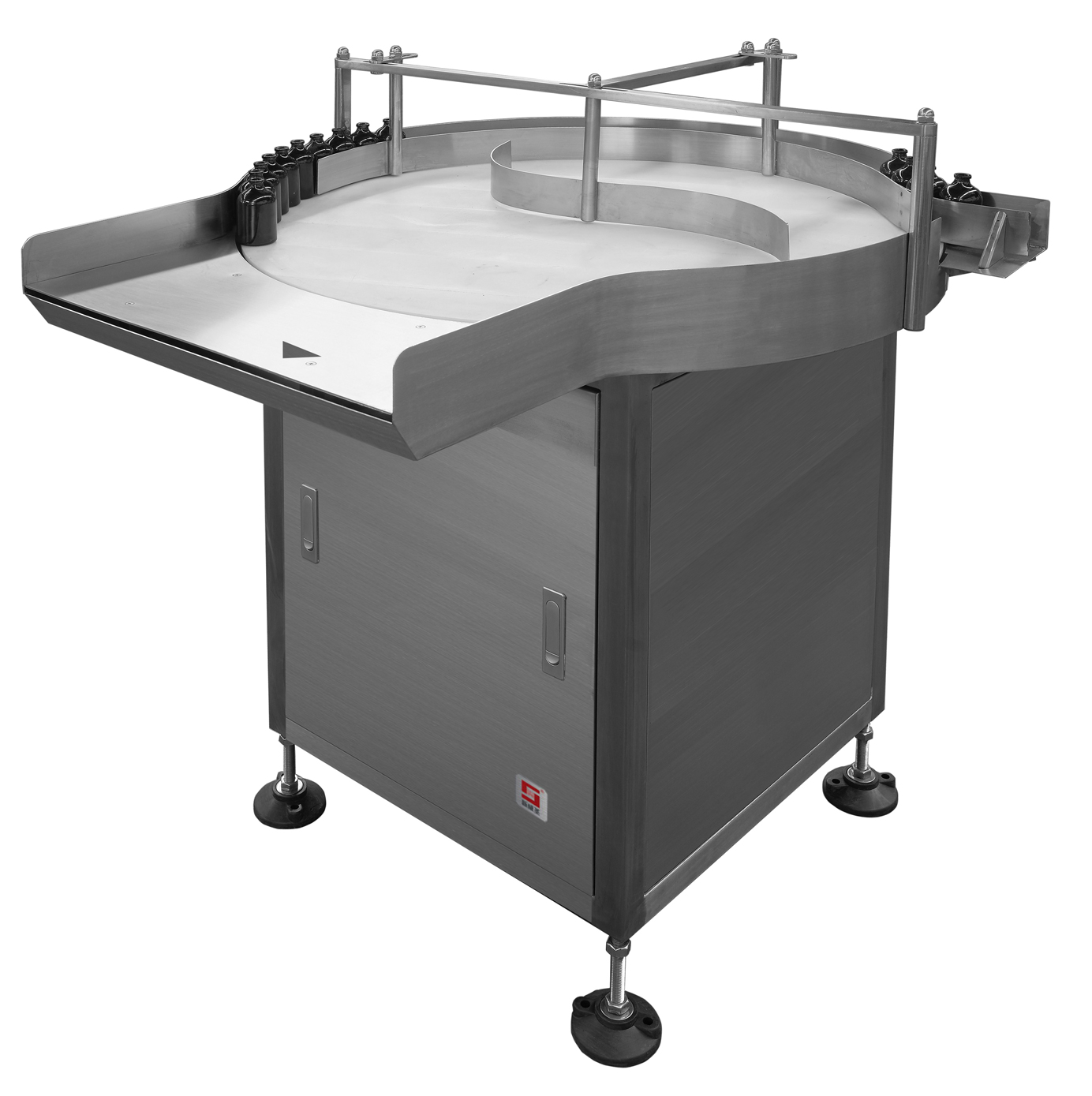 供瓶机是通过电机带动转盘,使瓶子在工作台上周转...